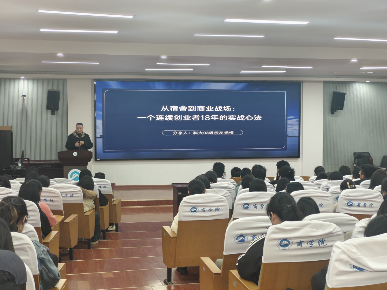 2025年12月18日下午,湖南科技大学“创新创业大讲堂”第一百二十八讲于第三教学楼101教室圆满举行。本次讲座特邀优秀校友杨柳担任主讲,以“从宿舍到商业战场:一个连续创业者的18年实战心法”为主题,为在场师生带来了一场真挚动人、富有启发的创业分享。