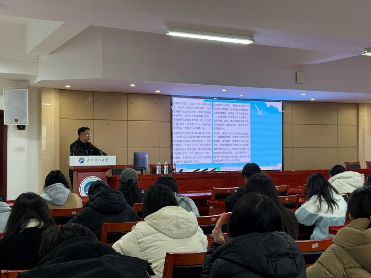 2026年3月26日,创新创业大讲堂第一百三十二讲在立言楼4-1教室举办,湖南科技大学校友、怀化市第三中学教学副校长王君峰应邀返校,作“我的大学 我的梦”主题讲座。