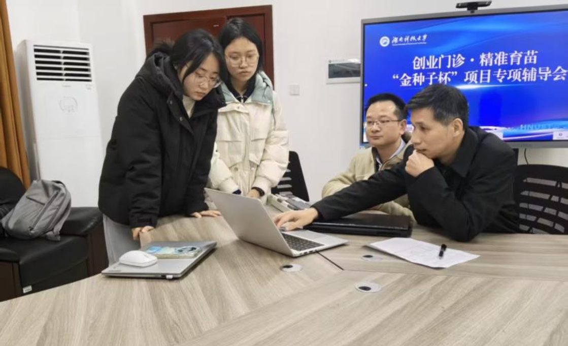 2025年12月12日,湖南科技大学“金种子杯”项目专项辅导会在敏行楼C102成功举办。本次辅导会特邀全国竞赛优秀指导教师曾照福老师驻场指导,以“面对面沟通、针对性诊断”的方式,为各参赛团队提供一对一精准辅导,深入剖析项目问题,量身定制优化方案,助力学生在竞赛中扎实前行、突破自我。