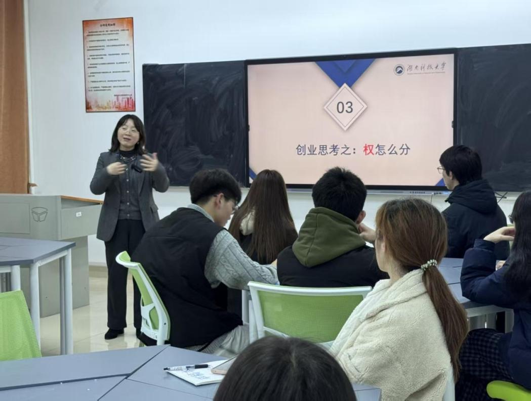 讲座中,谢老师围绕创业团队组建、股权结构设计、知识产权保护、合同签订与履行等关键环节,系统讲解了创业全流程中的法律风险点。她特别指出,初创企业应提前规划股权架构,明确团队权责边界,同时注重知识产权布局,为项目长远发展奠定坚实基础。