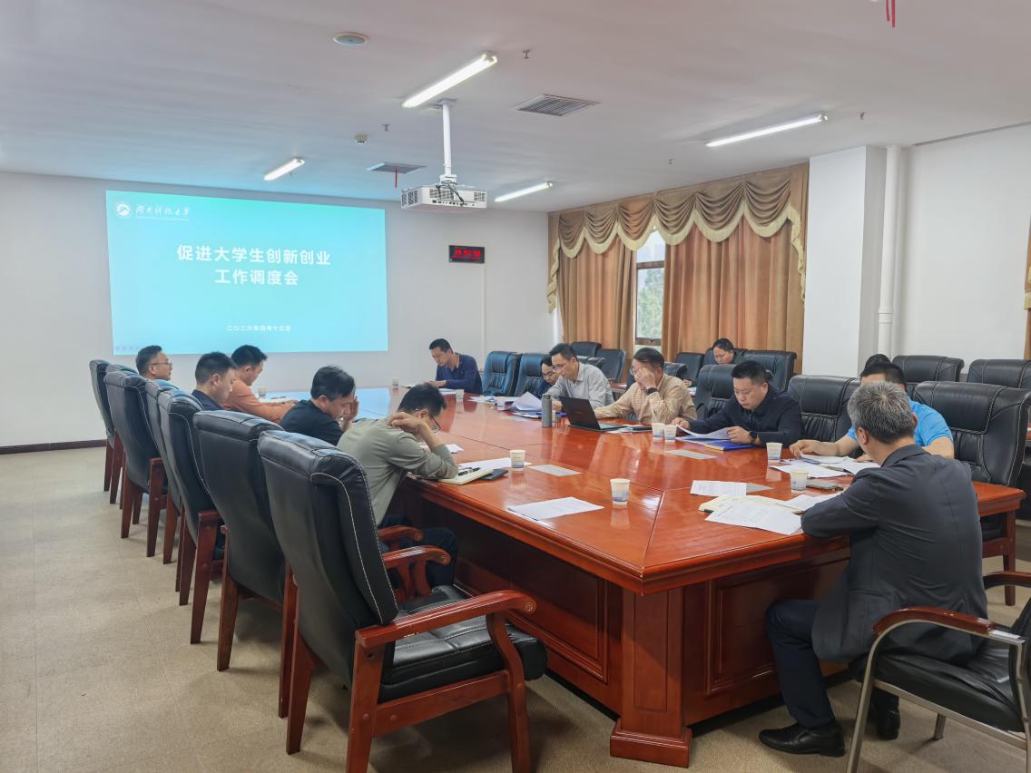 4月13日下午,湖南科技大学在立德楼301会议室召开促进大学生创新创业工作调度会。会议由副校长余伟健主持,宣传部、本科生院、科研部、人事处、研究生院、学工部、财务处、国资处、校友与合作办、团委、资安学院、机电学院、地空学院等单位主要负责人及创新创业工作专班工作人员参加会议。
