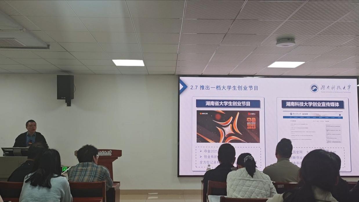在随后的专题报告中,企业家导师、湖南兴元科技股份有限公司副总经理吴家强紧扣大赛需求,作了《“金种子杯”创新创业项目培育与落地方法》的专题讲座,从“如何发现真问题”到“如何构建商业模式”,为同学们拆解了项目从实验室走向市场的完整路径。刘东海院长则系统解读了支持大学生创业“七个一”政策以及“金种子杯”的参赛细则,号召各学院、各指导老师重视创新创业教育,鼓励师生们积极备赛,在实践中锤炼本领,通过“金种子杯”这一平台实现飞跃式发展。最后,我们邀请优秀项目进行路演展示,为参会师生们展示成功样本。