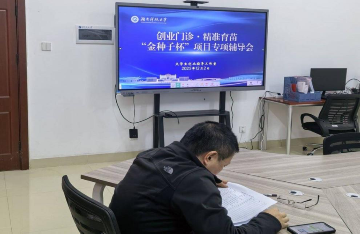 为系统提升学生创新思维与创业能力,优化参赛项目质量,切实推动“以赛促学、以赛促创”走深走实,湖南科技大学于12月正式启动“创业门诊”指导机制。该机制依托大学生创业指导工作室,面向“金种子杯”参赛团队开展常态化、针对性辅导。首场专项辅导会于12月2日顺利举行,创新创业学院院长、湖南省大学生创业导师刘东海作为专家出席,与各参赛团队进行深入交流与精准指导。